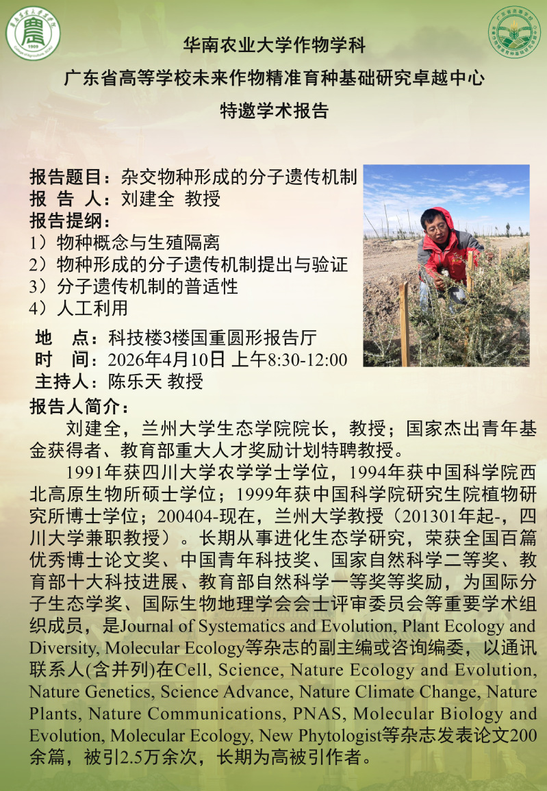 2026年学术报告第6期丨刘建全:杂交物种形成的分子遗传机制